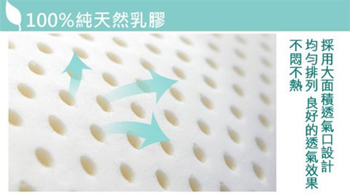 乳胶床垫的分子结构特殊,具有良好的舒适性、透气性、防霉、防尘螨、抑制细菌及寄生虫的滋生,开放式的乳胶多孔气囊结构每立方英寸中有250000内部相连的透气孔,使空气在床垫中自由流通,可分散睡眠中肌肤与床垫接触产生的热气、汗气、保持睡眠中身体的舒适干爽。